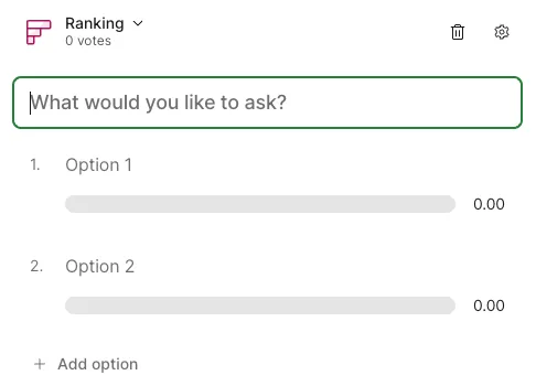 - Ranking - Set multiple items for participants to rank.
