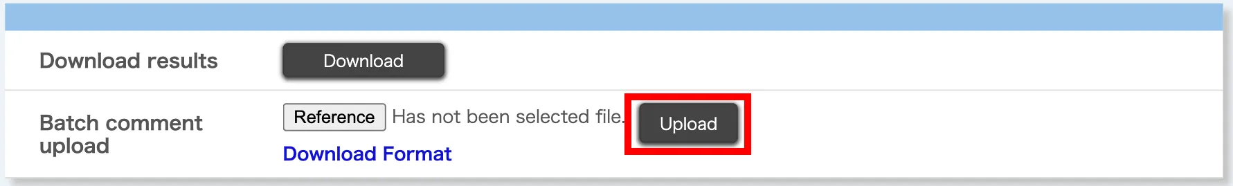 Click “Upload” in the “Batch comment upload” section.