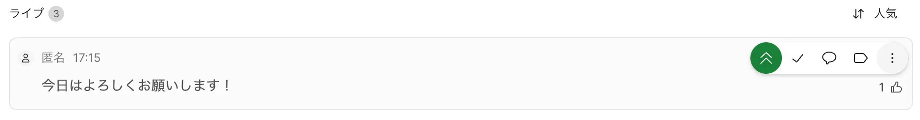 それぞれの質問・感想にカーソルを重ねることで,以下のようなボタンが表示され,質問・感想に対する操作を行うことができます.